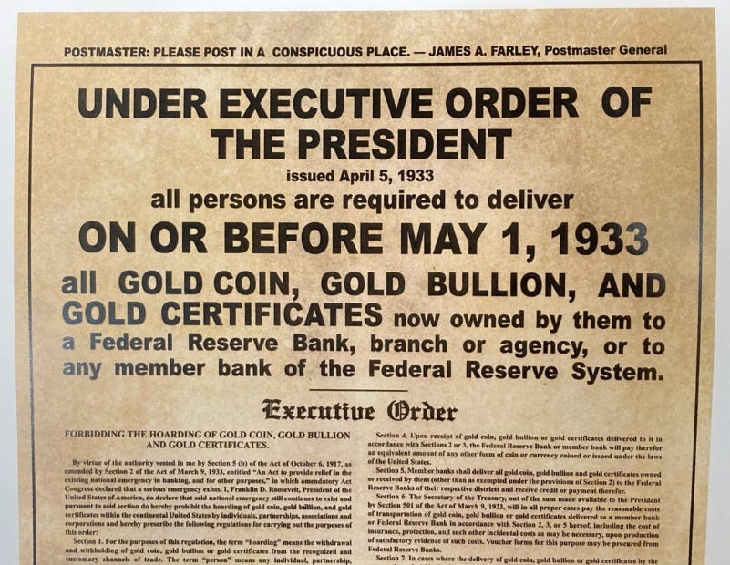 ÔÇ£The U.S. seized gold as people had begun to hoard it in the Great Depression, worsening the deflationary crisis.ÔÇØ