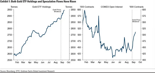 Gold has pushed above its multi-month consolidation range of $3,200–3,450 per ounce, gaining 6 percent since August 26 to reach about $3,650. According to Goldman analysts Lina Thomas and Daan Struyven, the breakout reflects the influence of three key buyer groups: