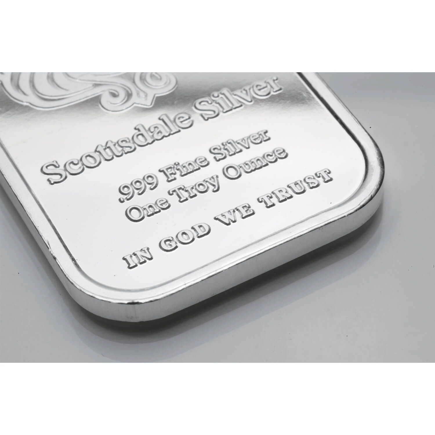 If you are considering your very first precious metal purchase, the 1 oz silver bar is a low-risk option that feels rewarding; if you have already started a precious metal collection, you can pick up a handful of these slender bars without batting an eye. While silver bullion comes minted in several shapes and weights, 1 oz silver bars are the standard for convenience and accessibility ÔÇö and Scottsdale MintÔÇÖs 1 oz silver bar is beautifully designed, at that.
