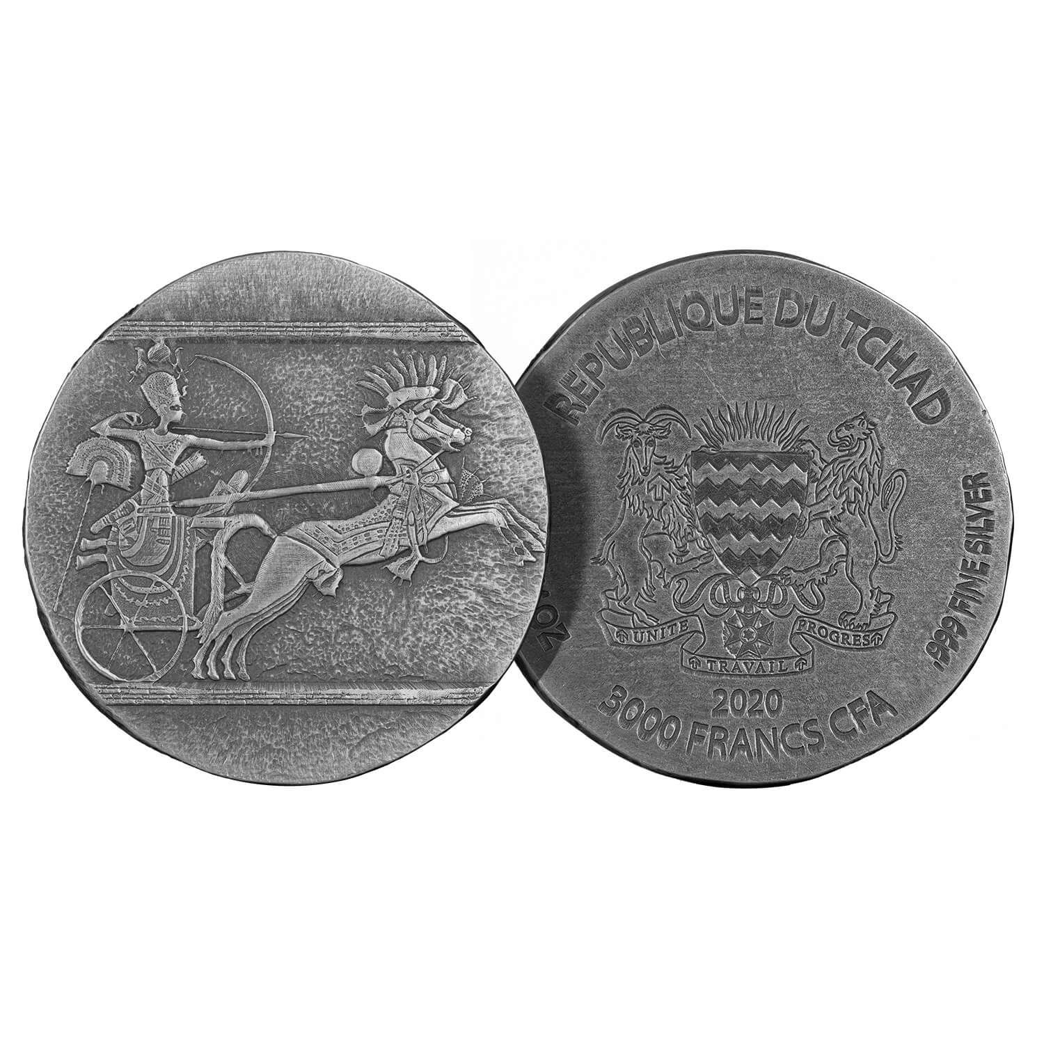Scottsdale Mint is pleased to announce the release of the 5 oz Republic of Chad Chariot of War BU (2020).  The release of the 5 oz Republic of Chad Chariot of War Coin BU (2020) marks the continuation of the popular Egyptian Relic Series.