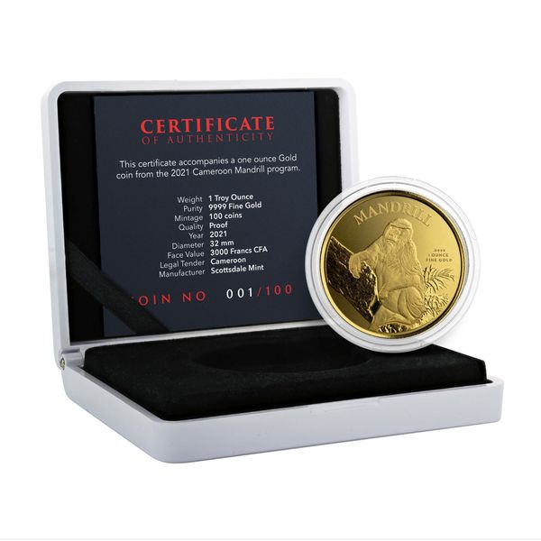 With its exceptional artistry and dedication to wildlife conservation, the 1 oz Gold Cameroon Mandrill coin becomes a powerful call to action, urging us to cherish the wonders of this captivating African nation and protect the harmony of its rich ecosystems. Embark on a journey into the heart of Cameroon's wild landscapes and embrace the vibrant legacy of the Mandrill with this extraordinary coin, capturing the essence of Africa's unyielding wilderness and Cameroon's enduring spirit.