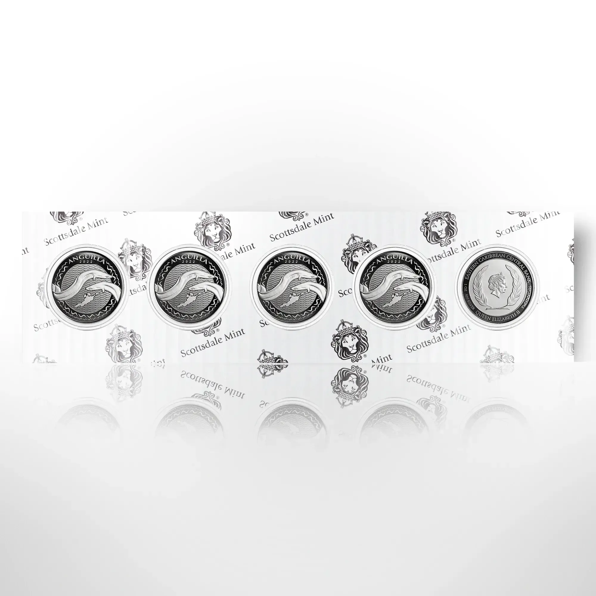 Scottsdale Mint, in partnership with the Eastern Caribbean Central Bank (ECCB), is pleased to continue the EC8 program with the release of the 5th issue of Anguilla Silver and Gold Coins.  Manufactured and distributed by Scottsdale Mint, each coin is struck in .999+ silver and .9999+ gold and weighs one troy ounce.