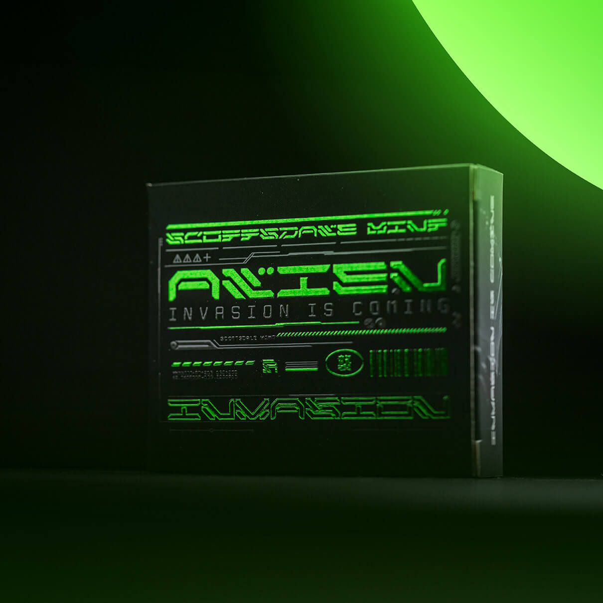 Now in its third year, get ready for an otherworldly adventure with our stunning alien series, titled "Invasion is Here." This extraordinary coin showcases two formidable aliens, one clad in battle gear, preparing to board their rocket ship and embark on an interstellar journey.
