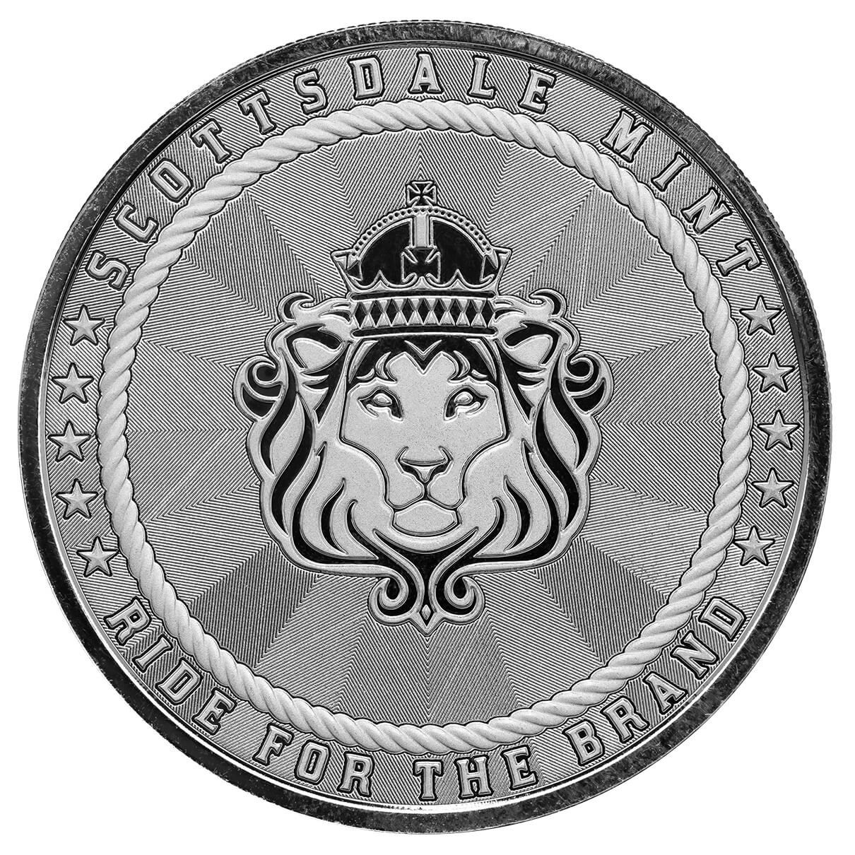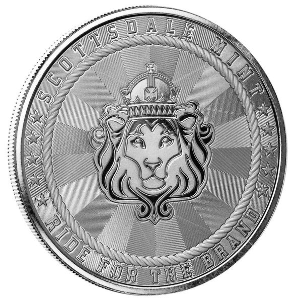 On the reverse of round amidst a beautiful design of radiating lines refracting the light sits the Scottsdale Lion with the popular cowboy saying "Ride for the BrandÔÇØ directly below.