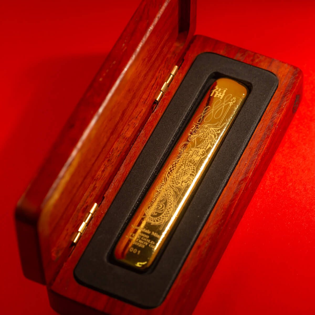 Each Gold Lucky Dragon Bar is meticulously minted using .9999 fine gold, ensuring the highest level of purity and quality and is serialized to ensure its uniqueness. The bar's substantial weight of 8.88 troy ounces not only makes it a coveted addition to any precious metals collection but also adds a layer of cultural significance, as the number 8 is often associated with great fortune, wealth and spiritual enlightenment. Hence, 888 is considered triple fortune.