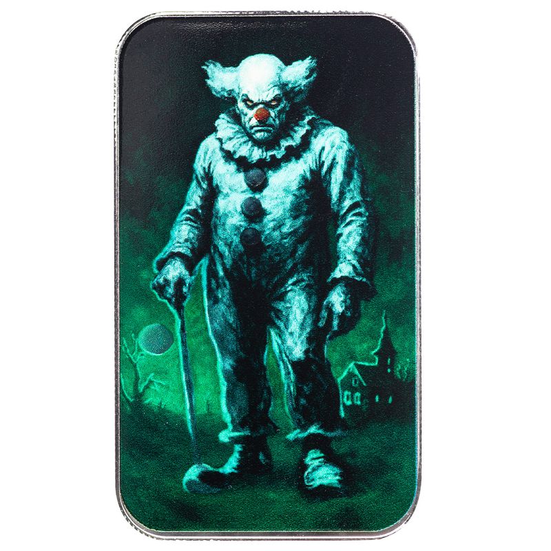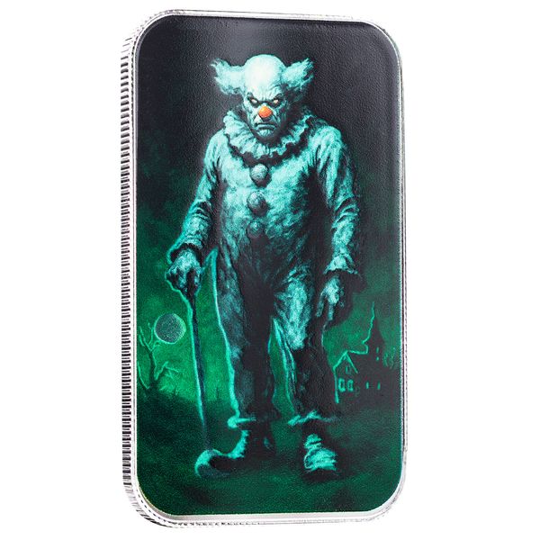 Containing one troy ounce of .999 fine silver, this non-serialized release is a standout in the Halloween Horror Collection. It combines bullion value with a horror-themed design that appeals to both investors and collectors. Perfect for those who enjoy uniquely macabre artistry, the Carnival Clown is a must-have seasonal collectible.