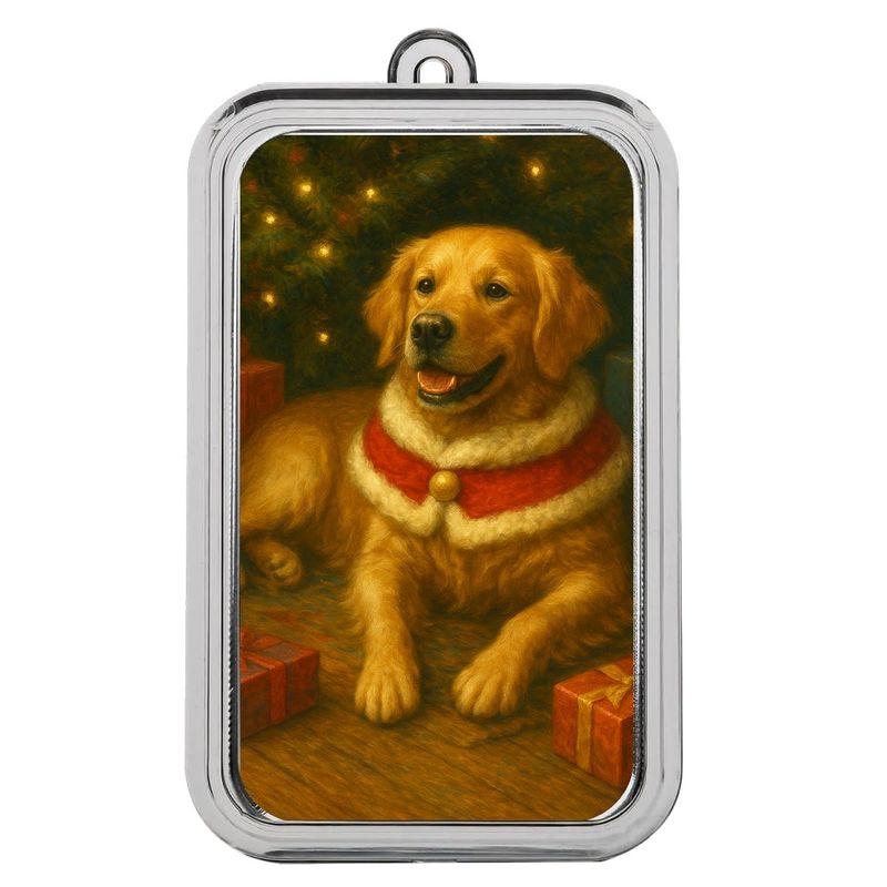 Celebrate the season with man’s best friend in the Dog Holidays – 1 oz .999 Fine Silver Bar. This heartwarming design captures the joy and comfort of Christmas through the eyes of a loyal companion. A cheerful golden retriever rests beside a beautifully decorated tree, surrounded by soft lights, colorful ornaments, and wrapped presents that glow in the gentle warmth of the holiday season.