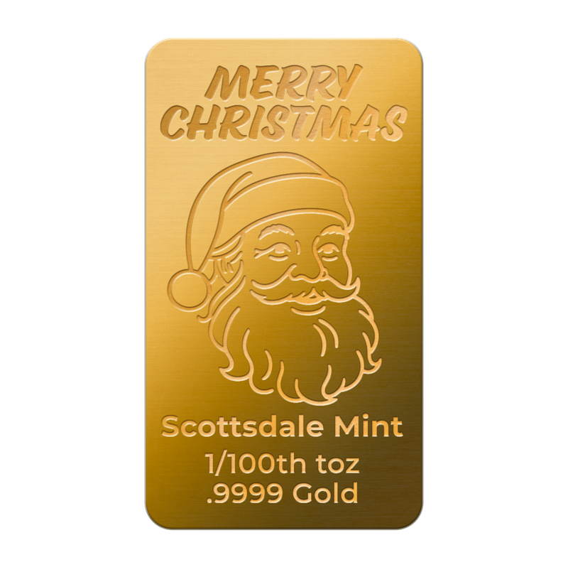 Whether given as a cherished gift or kept as a personal holiday memento, the 1/100th oz .9999 Fine Gold Santa Claus Bar brings cheer in a form that endures. Celebrate the season with a piece that shines brightly, offering charm, sentiment, and classic Christmas appeal year after year.