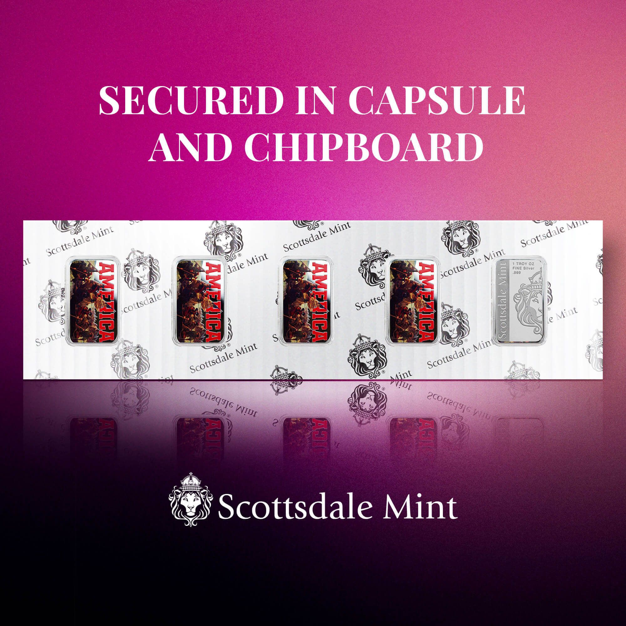 Presenting the George Washington Crossing the Delaware 1 oz .999 Silver Color Bar, a stirring portrayal of American history and bravery, expertly crafted by Scottsdale Mint.