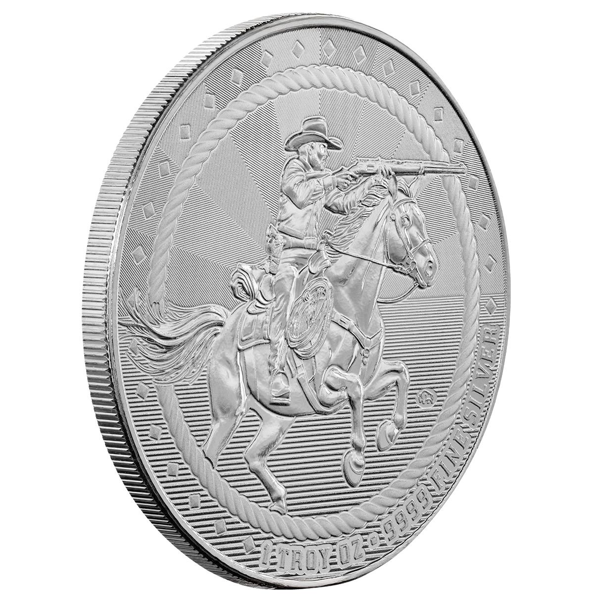 1 oz silver round, now featuring the bold new Cowboy Rifleman design in .9999 fine silver.