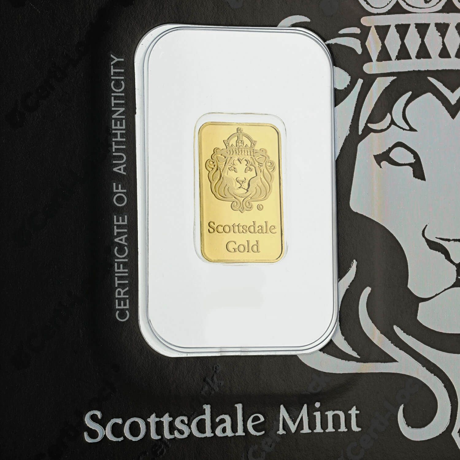 There are gold bars, and then there are Scottsdale Gold bars. The world famous lion hallmark is minted in .9999 fine gold, and co-branded with Swiss partner Heraeus. And that's just the start. Each bar is sealed in a Certi-Lock assay card and assigned a unique set of authenticity credentials designed to give you more confidence when you sell, in any market. 2 Grams of .9999 Fine Gold LBMA & ISO 9001-2015.