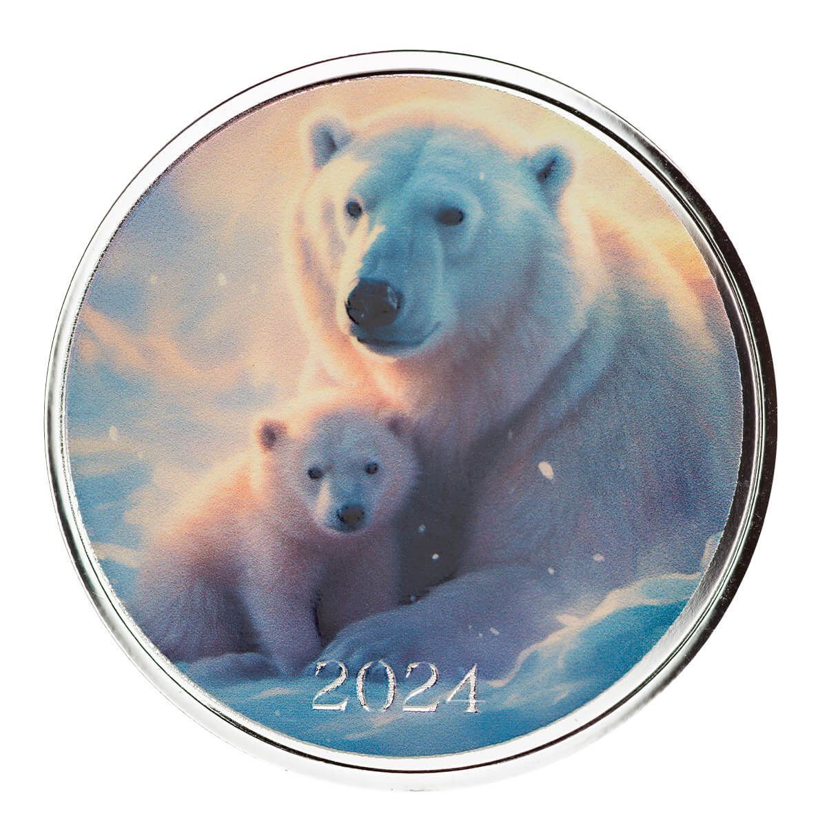 The Cuddly Polar Bears 1 oz Silver Bar beautifully captures the heartwarming bond between a mama polar bear and her baby as they snuggle together in a serene snowy landscape. The intricate details of their fluffy white fur contrast gently with the glistening snow, creating a sense of warmth and love amidst the chill of winter. This tender scene evokes feelings of comfort and protection, showcasing the beauty of nature's family ties. Struck from 1 oz of pure silver, this bar serves as a delightful collectible or gift, perfect for those who appreciate the charm and majesty of wildlife. Celebrate the love and connection found in the animal kingdom with this enchanting piece!